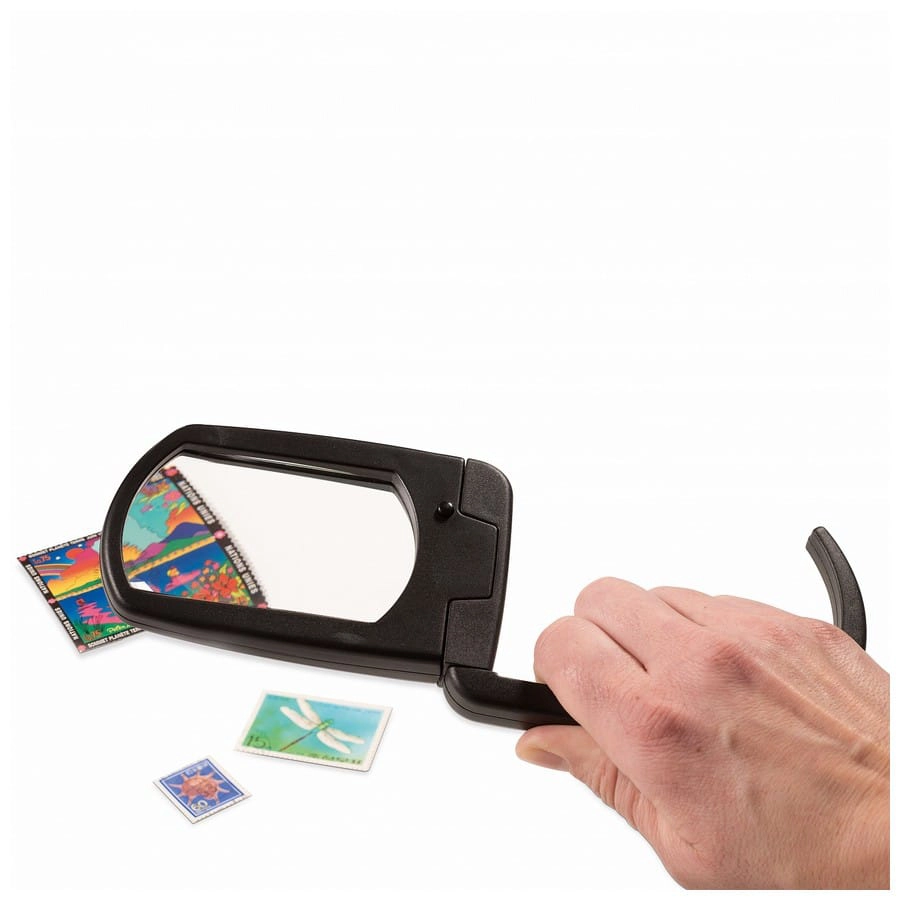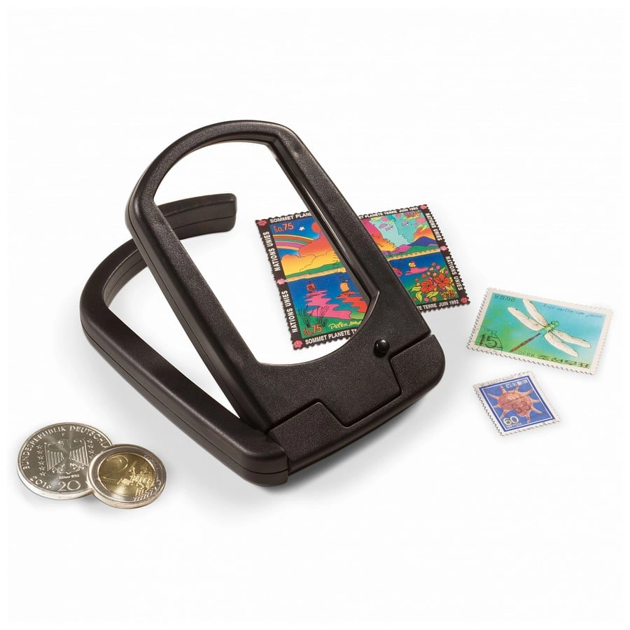 მრავალფუნქციური გამადიდებელი 3X გადიდებით. აკრილის ლინზით, ზომები: 80 x 53 მმ. რეგულირდება სხადასხვა სიმაღლეზე. კომპლექტში შედის 3 ცალი AG10/LR54 ზომის ბატარეა. საერთო ზომა: 126 x 85 x 15 მმ.